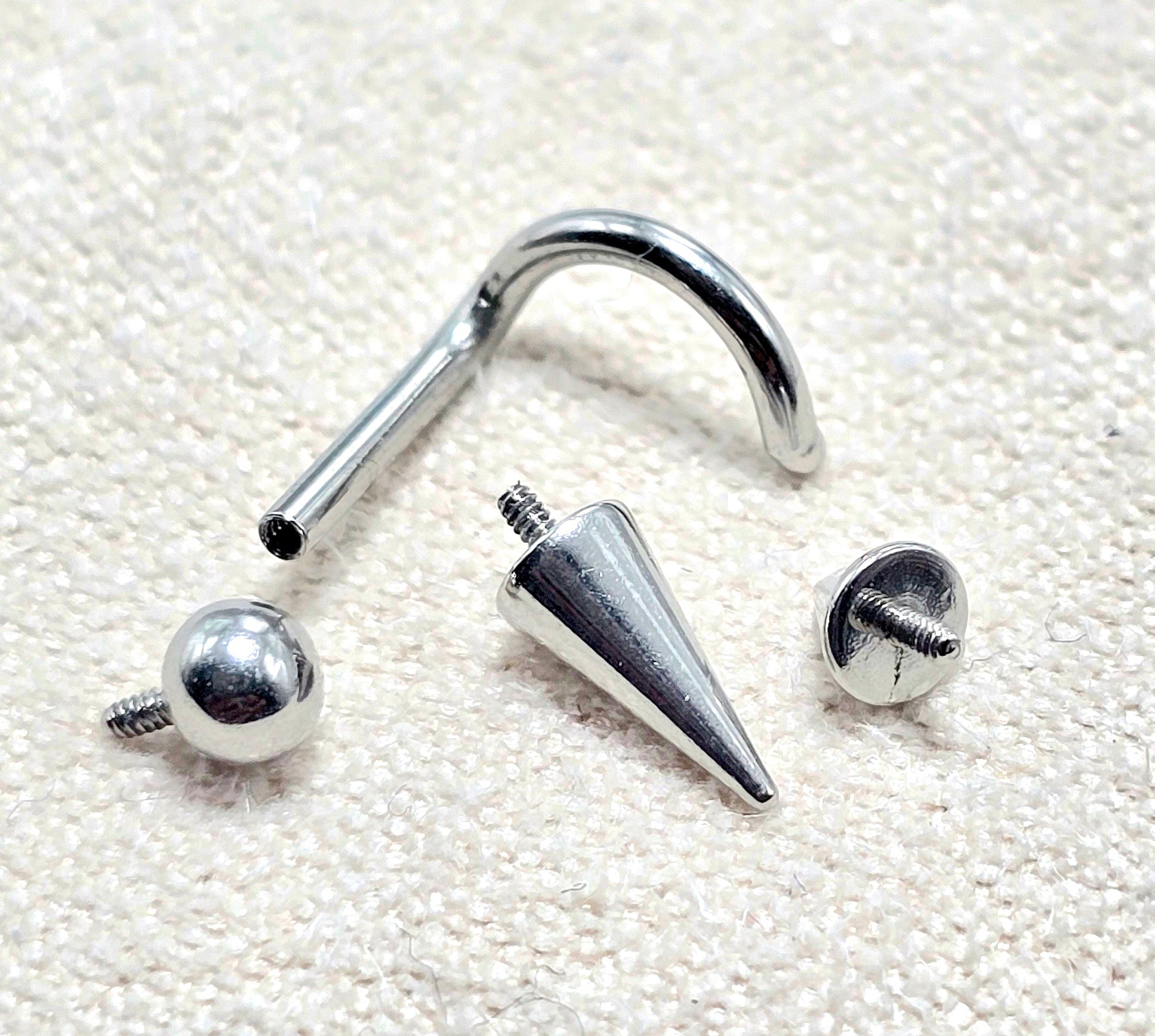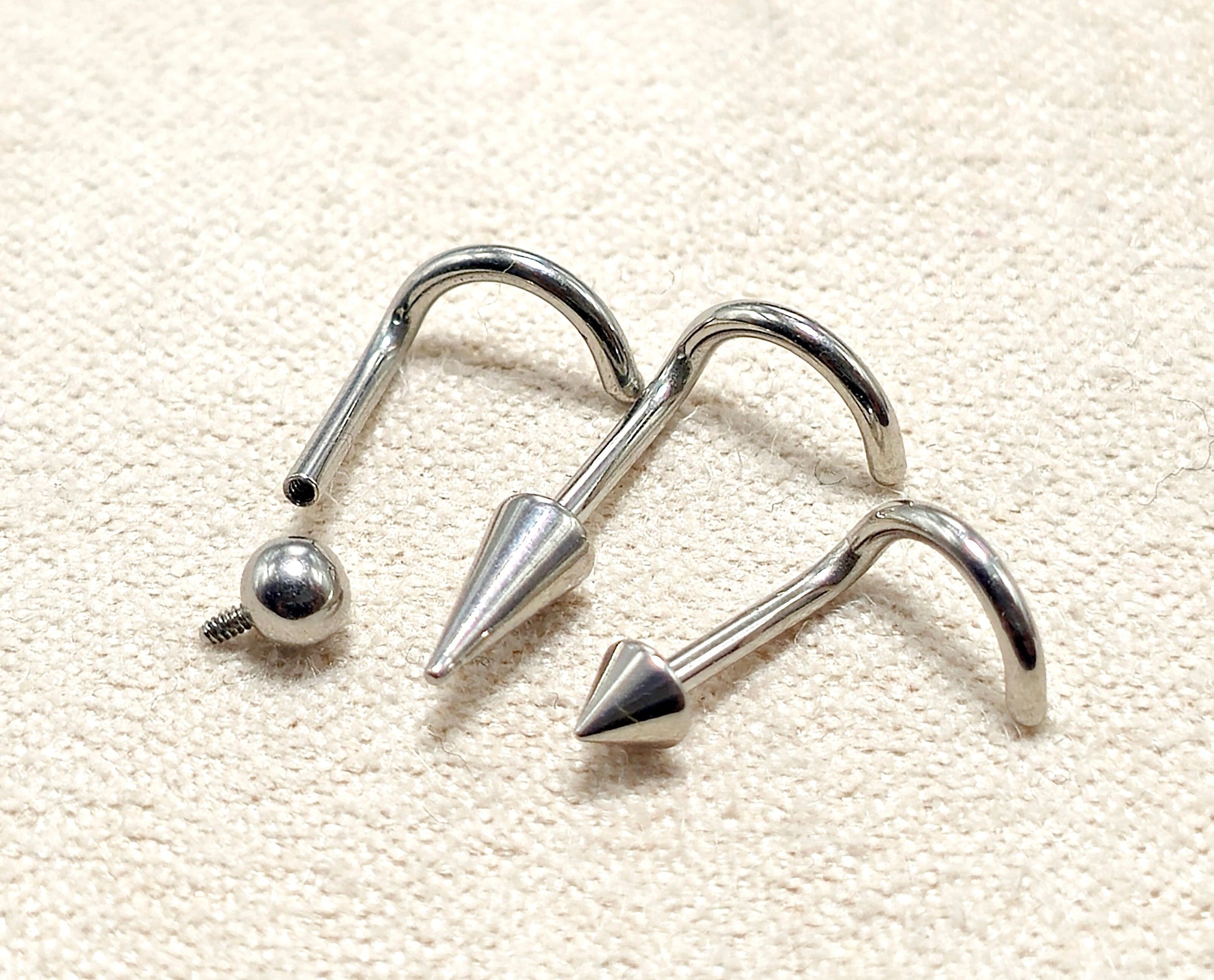 Titanium Nostril Nose Piercing, Nose Screw - 18G Internally Threaded in Ball Spike and Cones